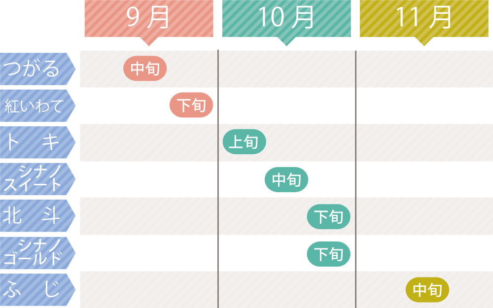 収穫時期はおおよその目安です。収穫でき次第順次お知らせいたします。